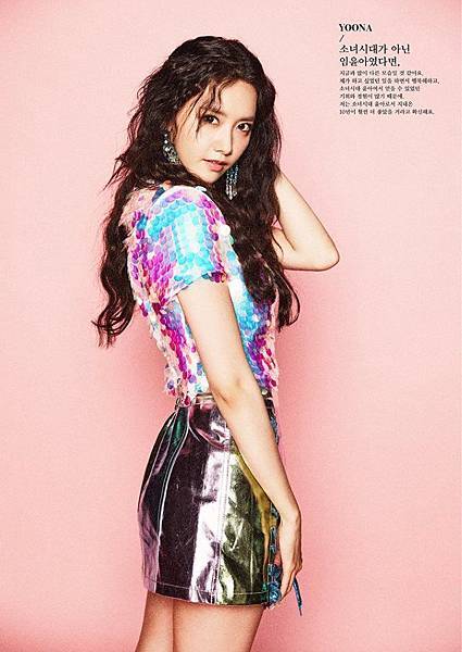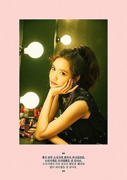 圖片中字:「如果不是少女時代而是林潤娥的話,應該會是跟現在非常不同的樣子。因為我現在做著自己想做的事,並因此感到幸福,而且還因為是少女時代的潤娥才得到很多機會與經驗,所以我確信,作為少女時代的潤娥所度過的十年,一定是更好的。」、「如果我不是少女時代的成員的話,我似乎會很羨慕少女時代。如果不是以少女時代的身分,而是 SOLO 活動的話,應該會很寂寞。」